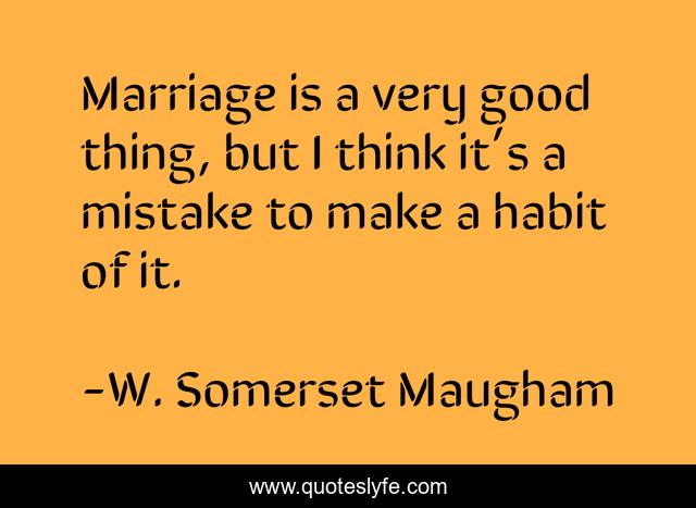 This page presents the quote "Marriage is a very good thing, but I think it’s a mistake to make a habit of it.". Author of this quote is W. Somerset Maugham. This quote is about habbit, marriage, w-somerset-maugham,.