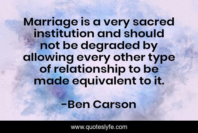 "Ben Carson Quotes." Quoteslyfe.com, 2026. Tue. 13 Jan. 2026. <https://www.quoteslyfe.com/quote/Marriage-is-a-very-sacred-institution-and-315077>.