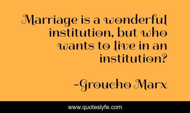 This page presents the quote "Marriage is a wonderful institution, but who wants to live in an institution?". Author of this quote is Groucho Marx. This quote is about marriage, comedy, love, humor, affection,.