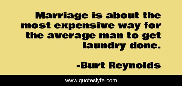 This page presents the quote "Marriage is about the most expensive way for the average man to get laundry done.". Author of this quote is Burt Reynolds. This quote is about done, way, man,.