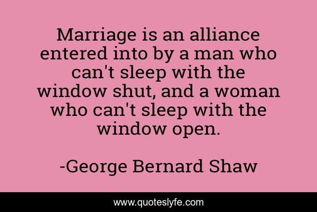 This page presents the quote "Marriage is an alliance entered into by a man who can't sleep with the window shut, and a woman who can't sleep with the window open.". Author of this quote is George Bernard Shaw. .