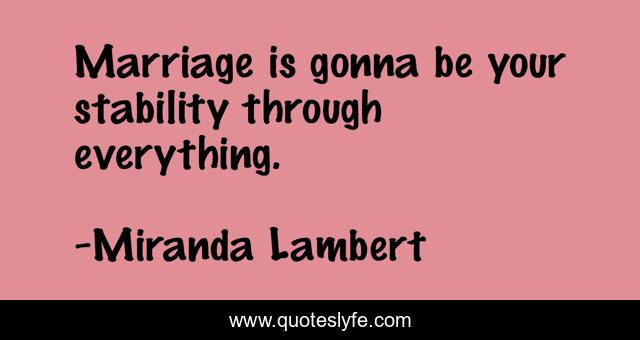 "Miranda Lambert Quotes." Quoteslyfe.com, 2025. Sun. 07 Dec. 2025. <https://www.quoteslyfe.com/quote/Marriage-is-gonna-be-your-stability-through-315167>.