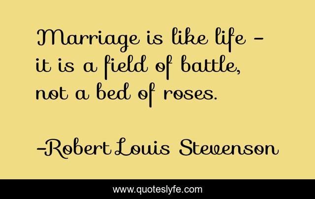 This page presents the quote "Marriage is like life - it is a field of battle, not a bed of roses.". Author of this quote is Robert Louis Stevenson. This quote is about battle, roses, life,.