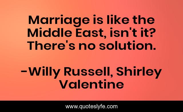 This page presents the quote "Marriage is like the Middle East, isn't it? There's no solution.". Author of this quote is Willy Russell, Shirley Valentine. .