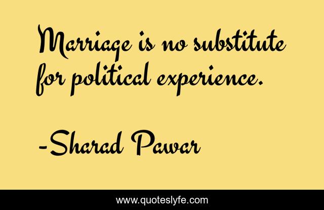 "Sharad Pawar Quotes." Quoteslyfe.com, 2025. Sat. 06 Dec. 2025. <https://www.quoteslyfe.com/quote/Marriage-is-no-substitute-for-political-experience-315179>.