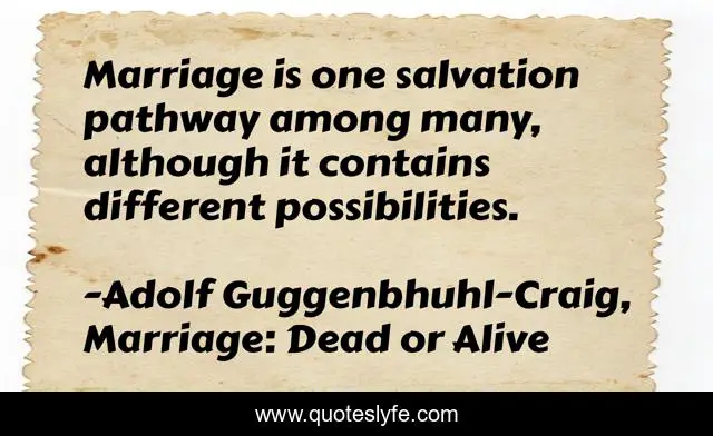 "Adolf Guggenbhuhl-Craig, Marriage: Dead or Alive Quotes." Quoteslyfe.com, 2025. Mon. 08 Dec. 2025. <https://www.quoteslyfe.com/quote/Marriage-is-one-salvation-pathway-among-many-225562>.