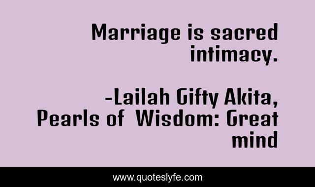 "Lailah Gifty Akita, Pearls of Wisdom: Great mind Quotes." Quoteslyfe.com, 2025. Sat. 06 Dec. 2025. <https://www.quoteslyfe.com/quote/Marriage-is-sacred-intimacy-77240>.