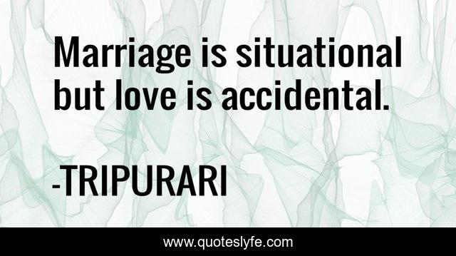 This page presents the quote "Marriage is situational but love is accidental.". Author of this quote is TRIPURARI. This quote is about situation, accident, marriage,.