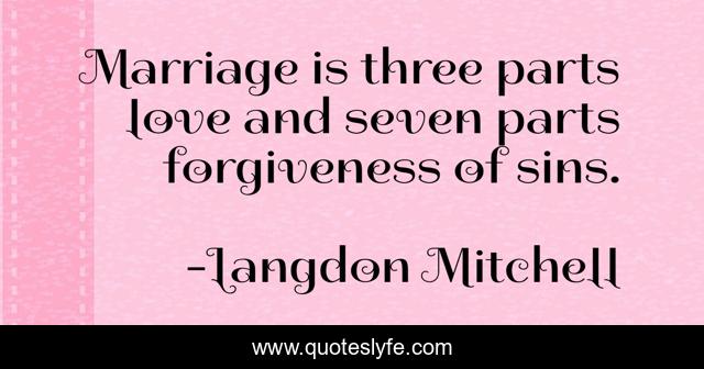 This page presents the quote "Marriage is three parts love and seven parts forgiveness of sins.". Author of this quote is Langdon Mitchell. .