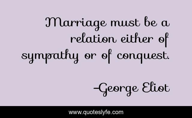 This page presents the quote "Marriage must be a relation either of sympathy or of conquest.". Author of this quote is George Eliot. This quote is about conquest, marriage,.