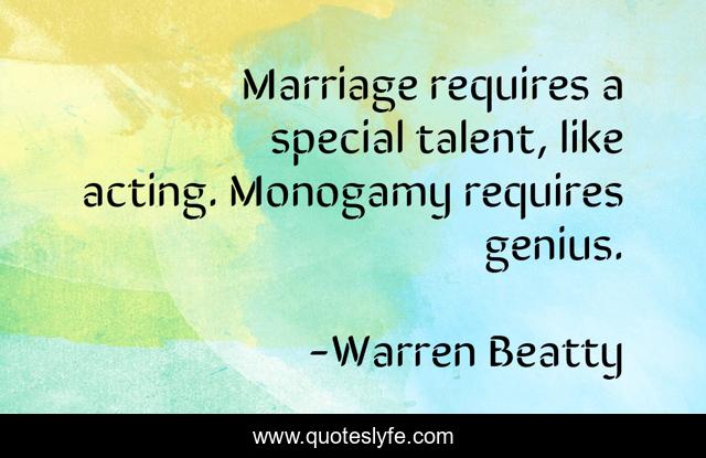 This page presents the quote "Marriage requires a special talent, like acting. Monogamy requires genius.". Author of this quote is Warren Beatty. This quote is about genius, acting, talent,.