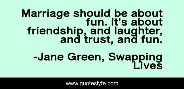 This page presents the quote "Marriage should be about fun. It's about friendship, and laughter, and trust, and fun.". Author of this quote is Jane Green, Swapping Lives. .