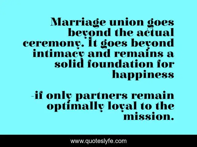 This page presents the quote "Marriage union goes beyond the actual ceremony. It goes beyond intimacy and remains a solid foundation for happiness". Author of this quote is if only partners remain optimally loyal to the mission.. .