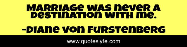 "Diane von Furstenberg Quotes." Quoteslyfe.com, 2025. Sat. 06 Dec. 2025. <https://www.quoteslyfe.com/quote/Marriage-was-never-a-destination-with-me-315141>.