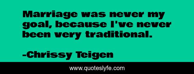 This page presents the quote "Marriage was never my goal, because I've never been very traditional.". Author of this quote is Chrissy Teigen. This quote is about traditional, goal,.