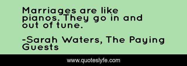This page presents the quote "Marriages are like pianos. They go in and out of tune.". Author of this quote is Sarah Waters, The Paying Guests. .