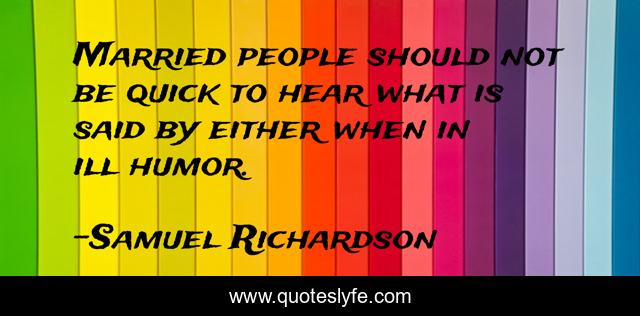 This page presents the quote "Married people should not be quick to hear what is said by either when in ill humor.". Author of this quote is Samuel Richardson. This quote is about said, people, married,.