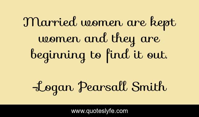 This page presents the quote "Married women are kept women and they are beginning to find it out.". Author of this quote is Logan Pearsall Smith. .