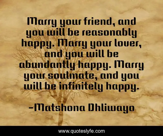 "Matshona Dhliwayo Quotes." Quoteslyfe.com, 2025. Mon. 08 Dec. 2025. <https://www.quoteslyfe.com/quote/Marry-your-friend-and-you-will-be-49286>.