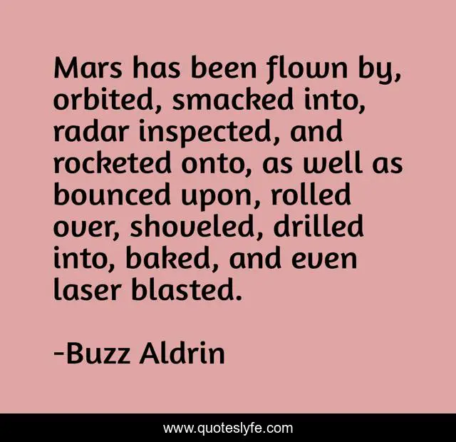 "Buzz Aldrin Quotes." Quoteslyfe.com, 2025. Sat. 06 Dec. 2025. <https://www.quoteslyfe.com/quote/Mars-has-been-flown-by-orbited-smacked-293115>.
