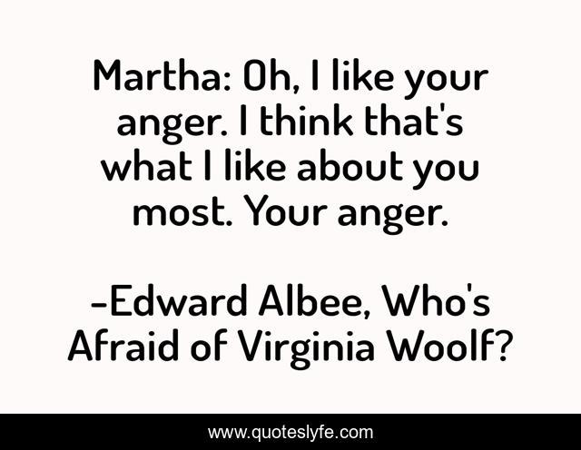 "Edward Albee, Who's Afraid of Virginia Woolf? Quotes." Quoteslyfe.com, 2025. Sun. 07 Dec. 2025. <https://www.quoteslyfe.com/quote/Martha-Oh-I-like-your-anger-I-76619>.