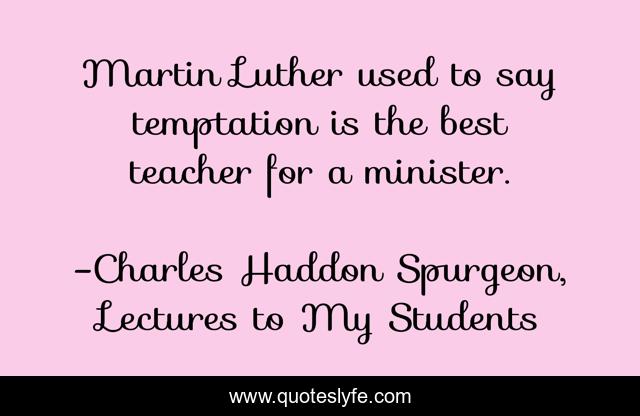 This page presents the quote "Martin Luther used to say temptation is the best teacher for a minister.". Author of this quote is Charles Haddon Spurgeon, Lectures to My Students. This quote is about compassion, discipleship, empathy, humility,.