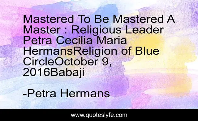 This page presents the quote "Mastered To Be Mastered A Master : Religious Leader Petra Cecilia Maria HermansReligion of Blue CircleOctober 9, 2016Babaji". Author of this quote is Petra Hermans. .