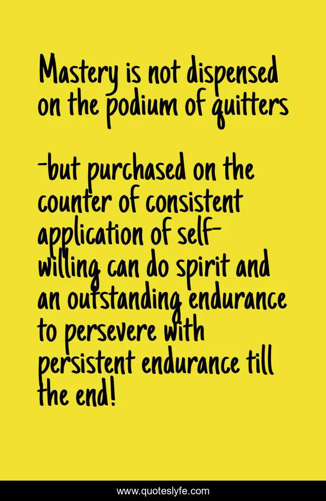 "but purchased on the counter of consistent application of self-willing can do spirit and an outstanding endurance to persevere with persistent endurance till the end! Quotes." Quoteslyfe.com, 2025. Sat. 06 Dec. 2025. <https://www.quoteslyfe.com/quote/Mastery-is-not-dispensed-on-the-podium-129469>.