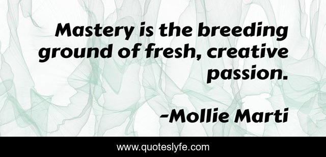 This page presents the quote "Mastery is the breeding ground of fresh, creative passion.". Author of this quote is Mollie Marti. This quote is about compassion, thriving, growth, wisdom,.