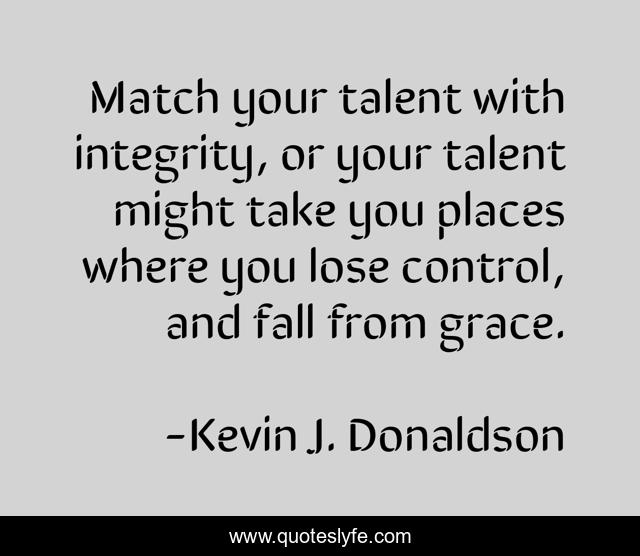 This page presents the quote "Match your talent with integrity, or your talent might take you places where you lose control, and fall from grace.". Author of this quote is Kevin J. Donaldson. This quote is about integrity, leadership, talent,.