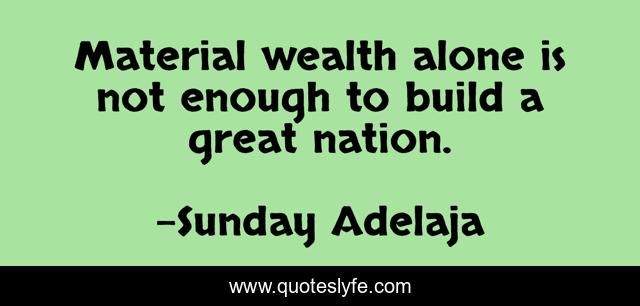 This page presents the quote "Material wealth alone is not enough to build a great nation.". Author of this quote is Sunday Adelaja. This quote is about great, wealth, material, nation, enough, alone,.