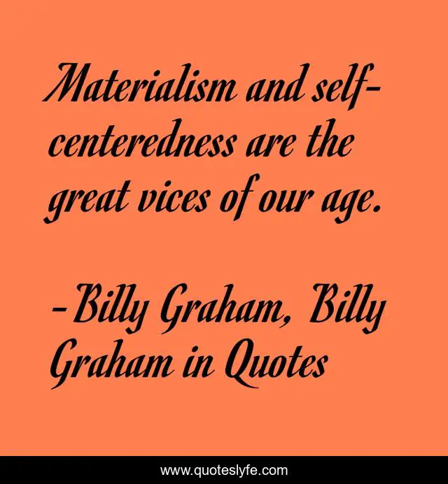 "Billy Graham, Billy Graham in Quotes Quotes." Quoteslyfe.com, 2025. Fri. 05 Dec. 2025. <https://www.quoteslyfe.com/quote/Materialism-and-self-centeredness-are-the-great-80388>.