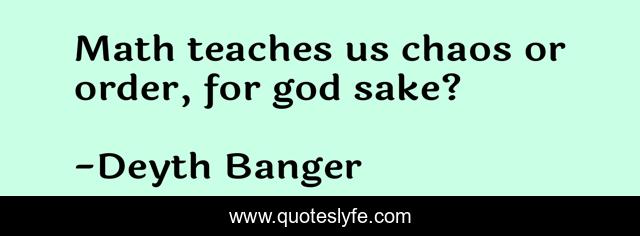 This page presents the quote "Math teaches us chaos or order, for god sake?". Author of this quote is Deyth Banger. This quote is about question, chaos, math,.