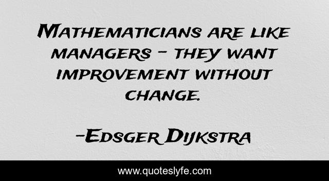 "Edsger Dijkstra Quotes." Quoteslyfe.com, 2025. Sat. 06 Dec. 2025. <https://www.quoteslyfe.com/quote/Mathematicians-are-like-managers-they-want-improvement-327629>.