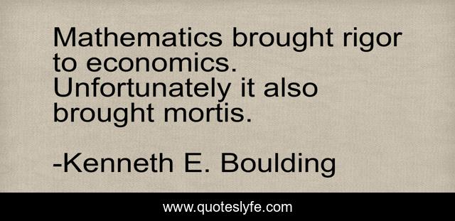 This page presents the quote "Mathematics brought rigor to economics. Unfortunately it also brought mortis.". Author of this quote is Kenneth E. Boulding. This quote is about mathematics, economics,.