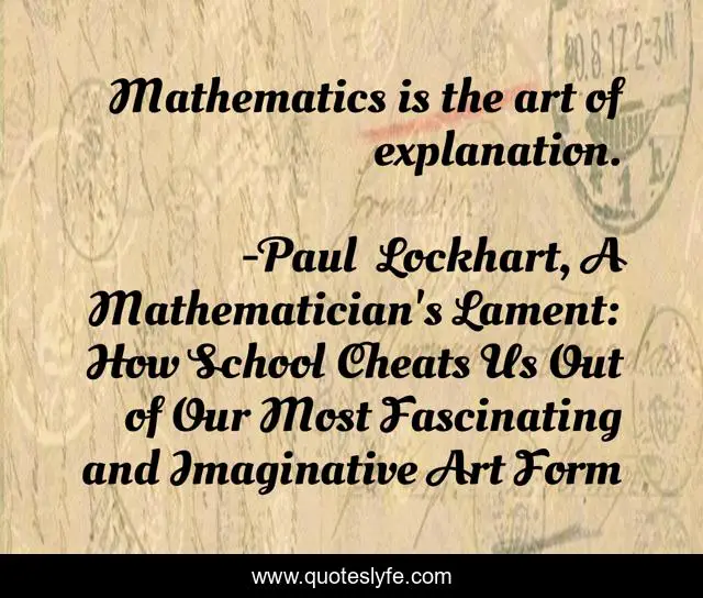 "Paul Lockhart, A Mathematician's Lament: How School Cheats Us Out of Our Most Fascinating and Imaginative Art Form Quotes." Quoteslyfe.com, 2025. Fri. 05 Dec. 2025. <https://www.quoteslyfe.com/quote/Mathematics-is-the-art-of-explanation-247187>.