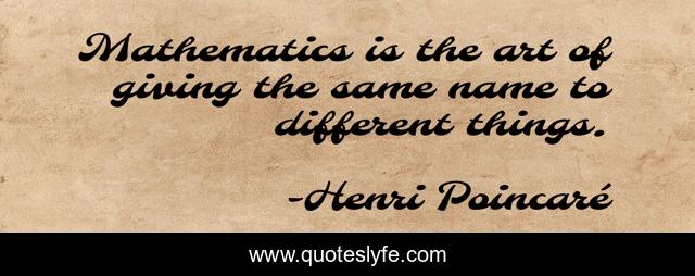 This page presents the quote "Mathematics is the art of giving the same name to different things.". Author of this quote is Henri Poincaré. This quote is about mathematics, abstraction, art,.