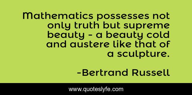 This page presents the quote "Mathematics possesses not only truth but supreme beauty - a beauty cold and austere like that of a sculpture.". Author of this quote is Bertrand Russell. .