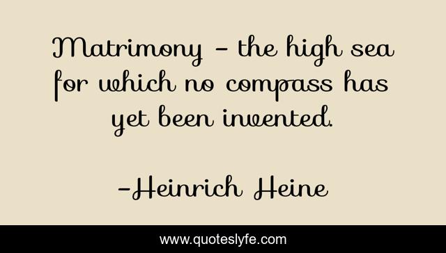 This page presents the quote "Matrimony - the high sea for which no compass has yet been invented.". Author of this quote is Heinrich Heine. .