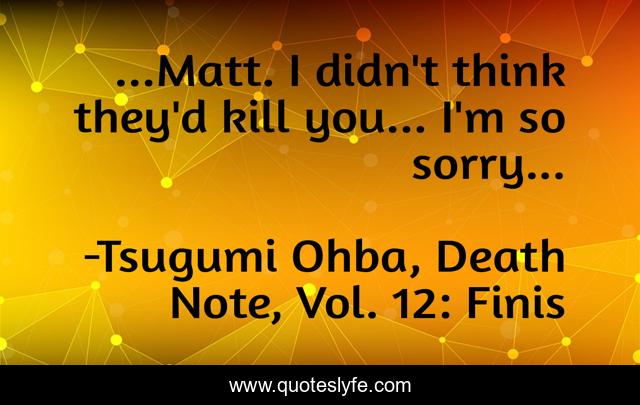This page presents the quote "...Matt. I didn't think they'd kill you... I'm so sorry...". Author of this quote is Tsugumi Ohba, Death Note, Vol. 12: Finis. This quote is about matt, death, mello,.