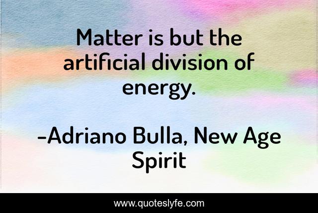 This page presents the quote "Matter is but the artificial division of energy.". Author of this quote is Adriano Bulla, New Age Spirit. This quote is about matter, energy, materialism, new-age-movement, new-age,.
