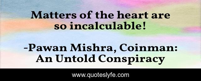 "Pawan Mishra, Coinman: An Untold Conspiracy Quotes." Quoteslyfe.com, 2025. Sat. 06 Dec. 2025. <https://www.quoteslyfe.com/quote/Matters-of-the-heart-are-so-incalculable-81333>.