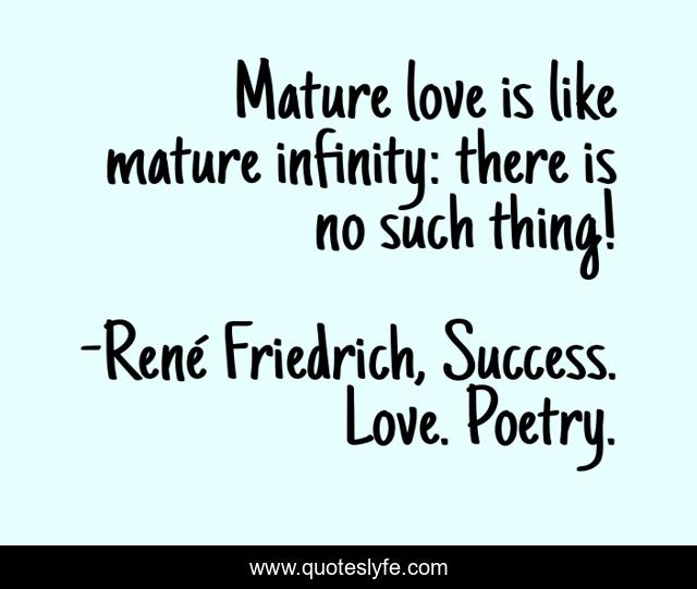 "René Friedrich, Success. Love. Poetry. Quotes." Quoteslyfe.com, 2025. Sat. 06 Dec. 2025. <https://www.quoteslyfe.com/quote/Mature-love-is-like-mature-infinity-there-140232>.