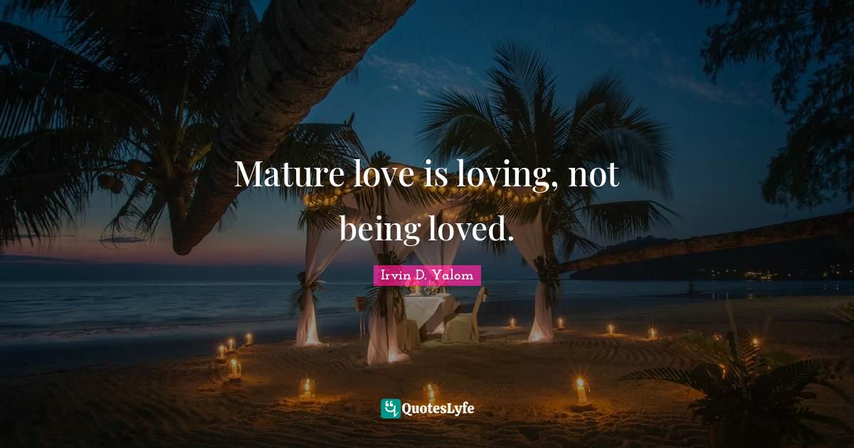 "Irvin D. Yalom Quotes." Quoteslyfe.com, 2026. Fri. 20 Mar. 2026. <https://www.quoteslyfe.com/quote/Mature-love-is-loving-not-being-loved-667327>.