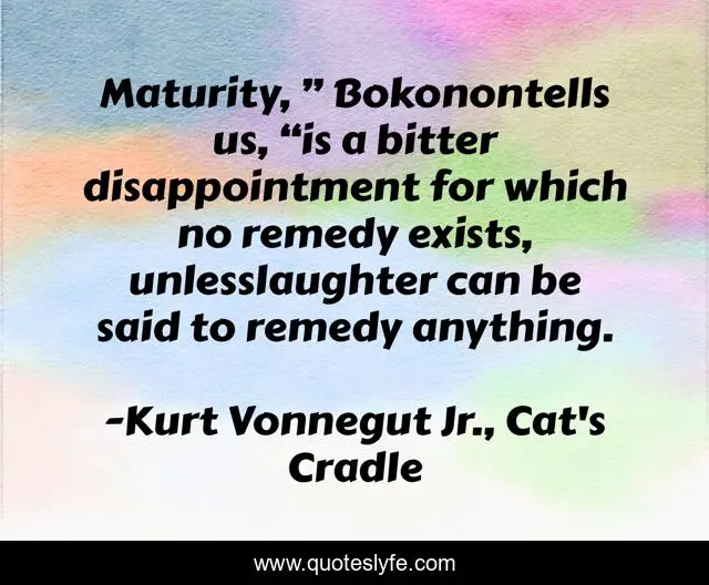 "Kurt Vonnegut Jr., Cat's Cradle Quotes." Quoteslyfe.com, 2025. Mon. 08 Dec. 2025. <https://www.quoteslyfe.com/quote/Maturity-Bokonontells-us-is-a-bitter-disappointment-233015>.