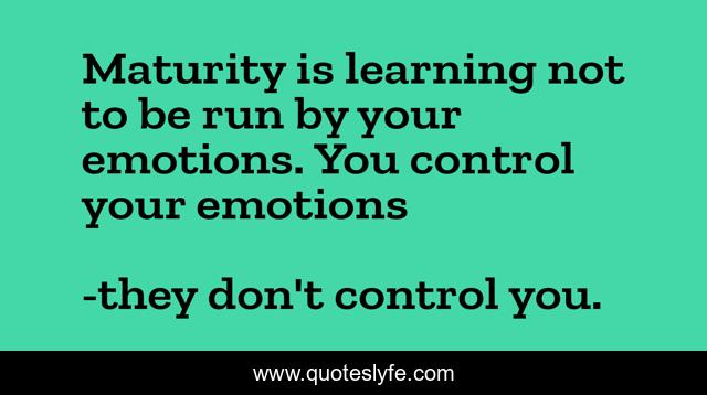 This page presents the quote "Maturity is learning not to be run by your emotions. You control your emotions". Author of this quote is they don't control you.. This quote is about cursing the church or helping it?: exposing the spirit of balaam, anna m. aquino,.