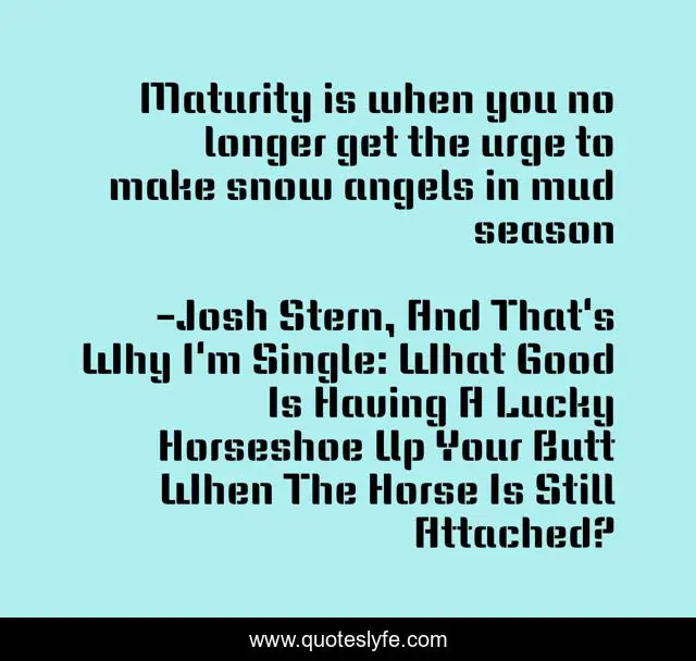 "Josh Stern, And That's Why I'm Single: What Good Is Having A Lucky Horseshoe Up Your Butt When The Horse Is Still Attached? Quotes." Quoteslyfe.com, 2025. Sat. 06 Dec. 2025. <https://www.quoteslyfe.com/quote/Maturity-is-when-you-no-longer-get-219593>.
