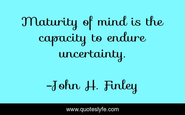 This page presents the quote "Maturity of mind is the capacity to endure uncertainty.". Author of this quote is John H. Finley. This quote is about uncertainties, doubts,.