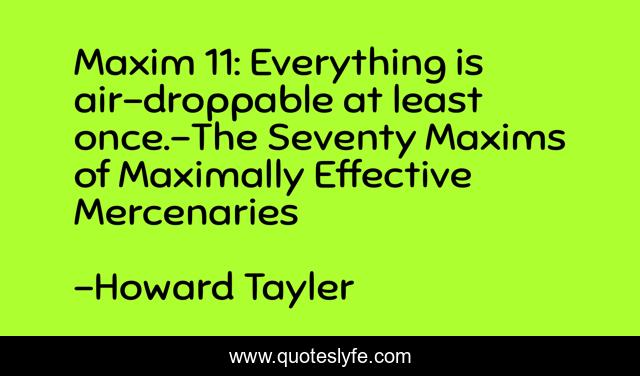 "Howard Tayler Quotes." Quoteslyfe.com, 2025. Fri. 05 Dec. 2025. <https://www.quoteslyfe.com/quote/Maxim-11-Everything-is-air-droppable-at-55787>.