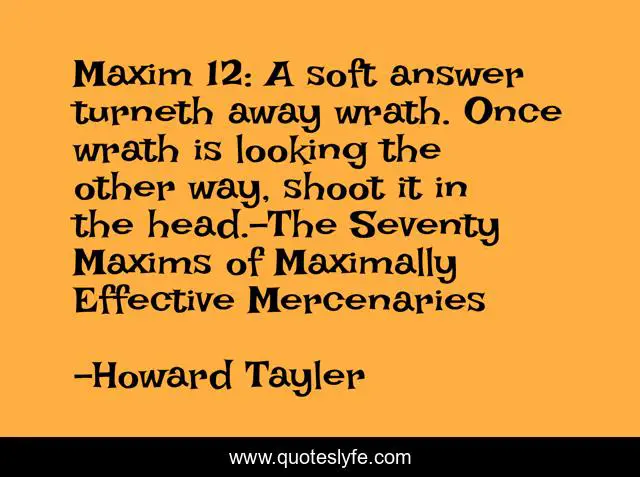 "Howard Tayler Quotes." Quoteslyfe.com, 2025. Sat. 06 Dec. 2025. <https://www.quoteslyfe.com/quote/Maxim-12-A-soft-answer-turneth-away-194526>.